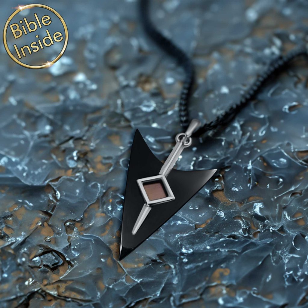 Modern Christian Jewelry Black Arrow Pendant Necklace with New Testament Inside My Nano Jewelry